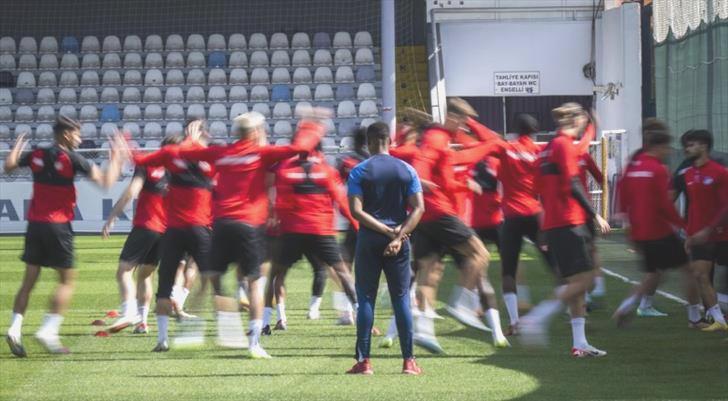 Teknik yönetici Serhat Gülpınar idaresinde Aktepe Stadı’nda toplanan eflatun-beyazlı ekip, idmana ısınma hareketleriyle başladı.