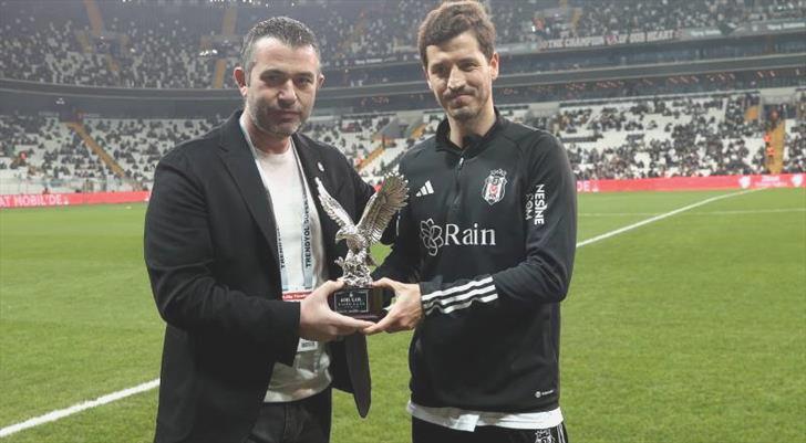 Siyah-beyazlıların yeni stadındaki 400’üncü golünü Ziraat Türkiye Kupası’nda Eyüpspor karşısında kaydeden deneyimli oyuncunun plaketini asbaşkan Onur Göçmez verdi.